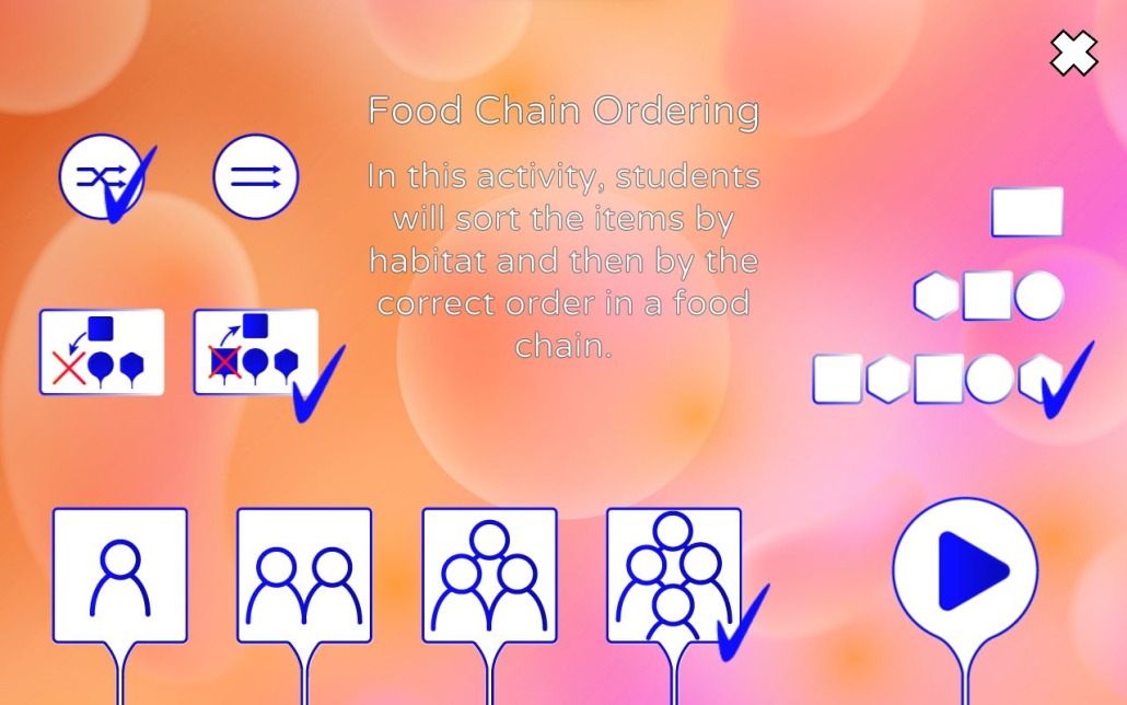 The Ordering game is suitable for all ages and all subjects. Use it to teach younger players a new nursery rhyme, or let the older players practice a poem by putting the stanzas in the correct order. Put inventions into categories according to the decade they were invented in, or use ordering to show the younger players the correct recipe order when baking cupcakes.
