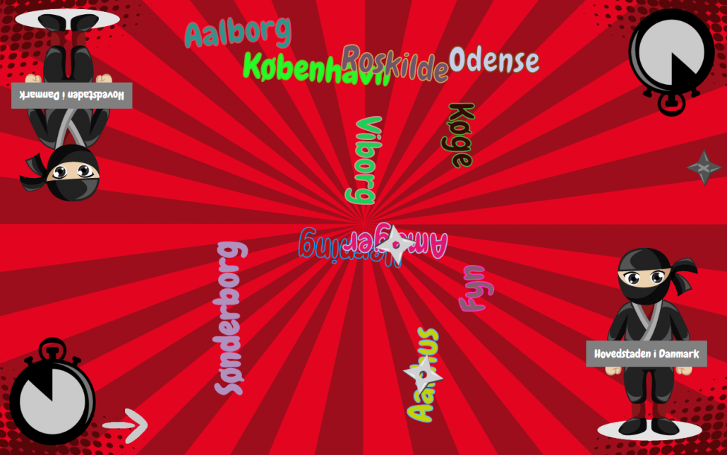 Questions appears and the answers are then floating around on the floor. The players have to pick the right answers as quickly as possible by placing their “ninja star” on the answer. If you are too slow, you may risk not being able to place the ninja star on the right answer before time is up. On the other hand, if you are too impatient, you may risk placing your ninja star on the wrong answer. The right and the wrong answers are revealed when the pre-set time is up.