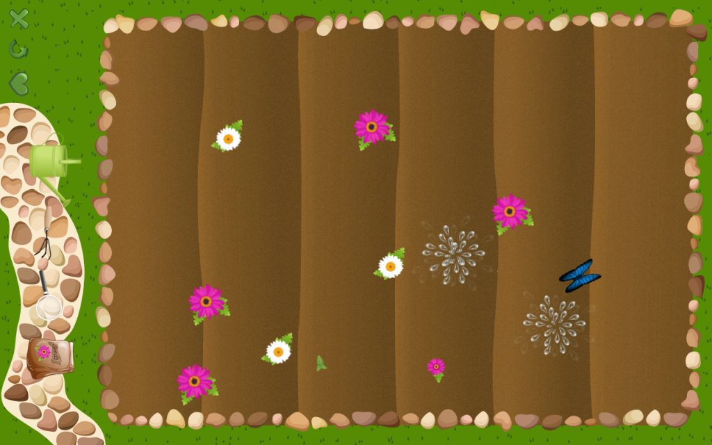 The Flower Garden game is a coordination game where the children tend to their own gardens. The players have to think creatively and act logically. They have to cooperate and have fun in planning and tending to their gardens – from preparing the garden soil for planting, sowing, watering, weeding, disinfesting and examining the animals – so that the gardens end up exactly as they want.