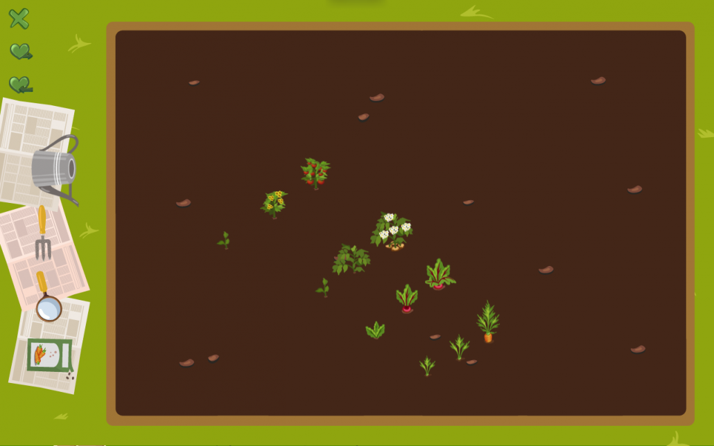 The Kitchen Garden is a coordination game where the players grow their carrots, tomatoes, potatoes and radishes. The participants have to think creatively and act logically. They have to collaborate and have a good time planning and tending their garden – from preparing the garden soil for planting, sowing, watering, weeding, disinfesting and examining the animals – so that the garden ends up as you want it to be.